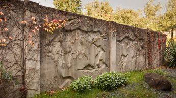 Concrete relief murals by artist Gurdon Woods at our future museum site invite reflection on symbolic language and the rhythms of human understanding.